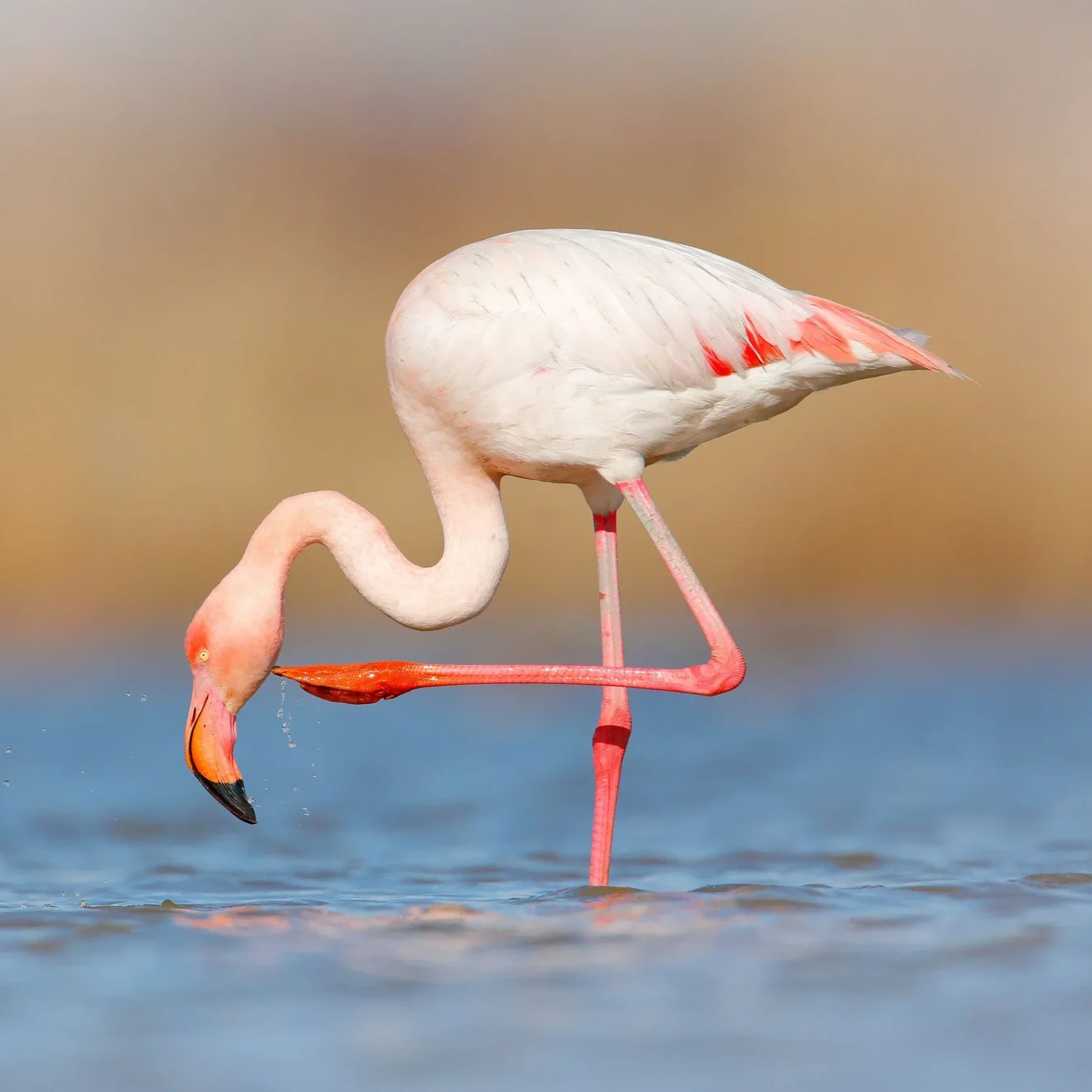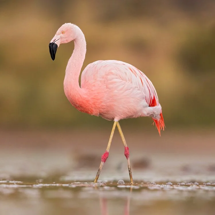 Leg positions emphasize the unique build of the flamingo