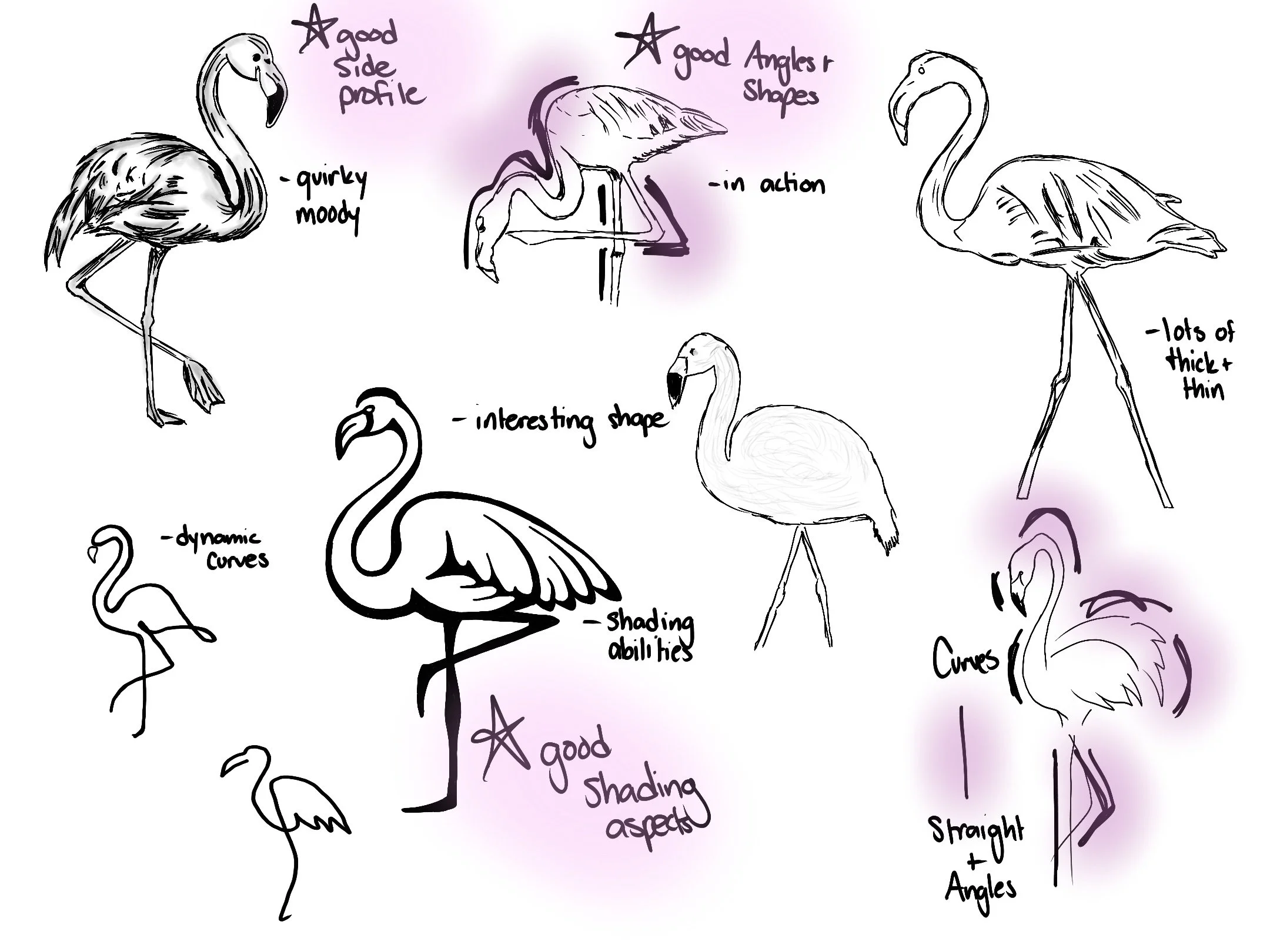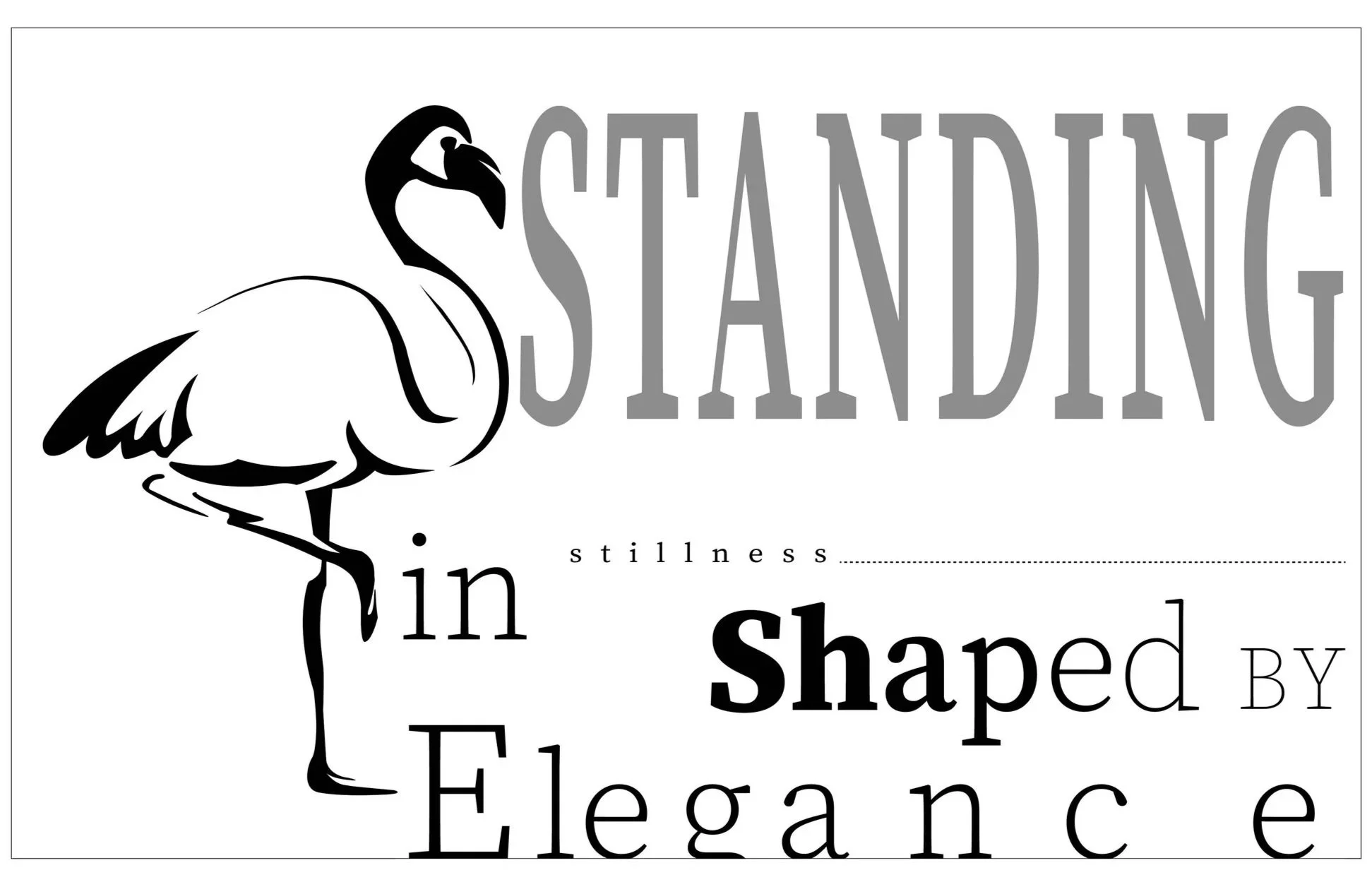 OBJECTIVE: Communicate unique qualities of the creature in an typographical and aesthetically pleasing format. Explore form and shape in a compositional study to properly express the flamingo.